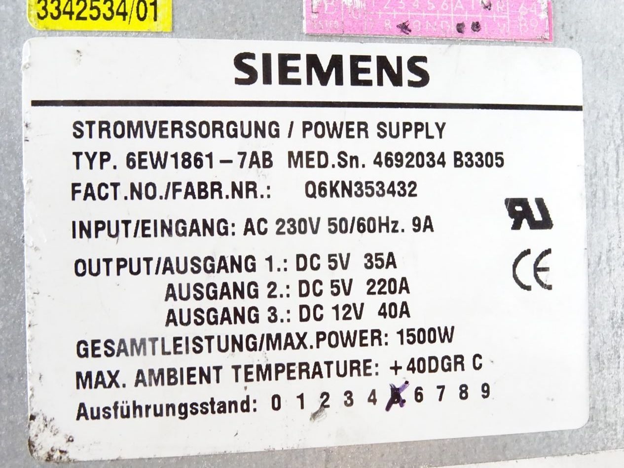 Siemens Power Supply 6EW1861-7AB 1500W