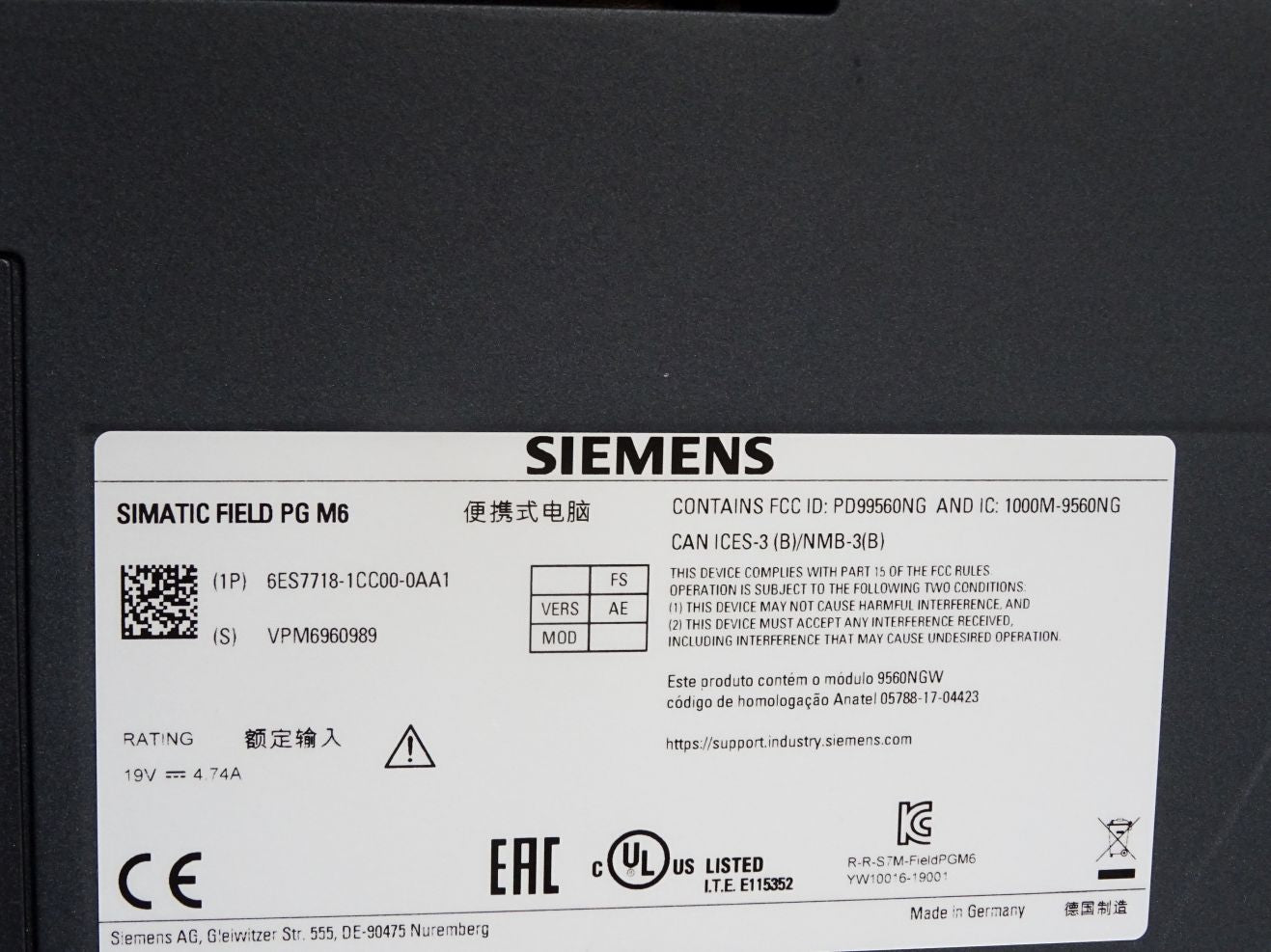 Siemens Simatic Field PG M6 Advanced 6ES7718-1CC00-0AA1 6ES7 718-1CC00-0AA1