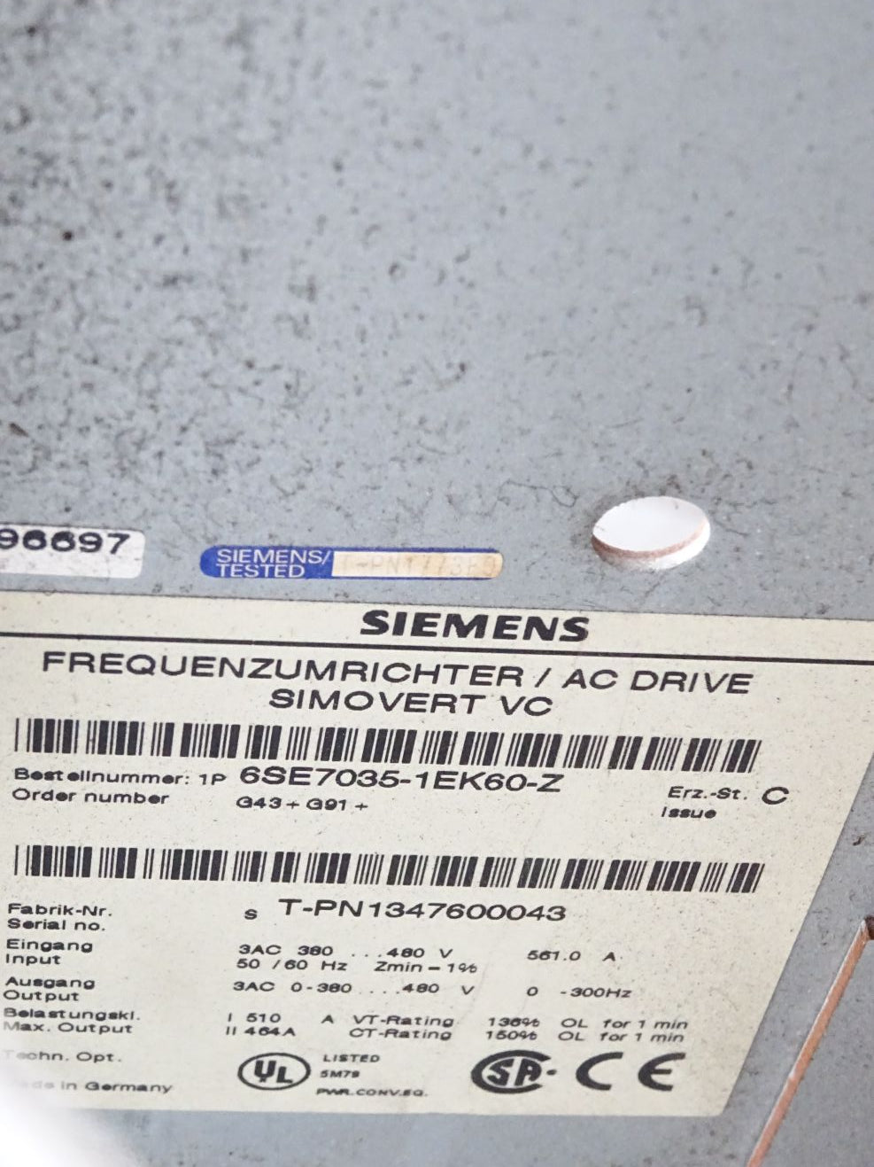Siemens Simovert Frequenzumrichter 6SE7035-1EK60-Z G43 G91 6SE7038-6GL84-1BG2