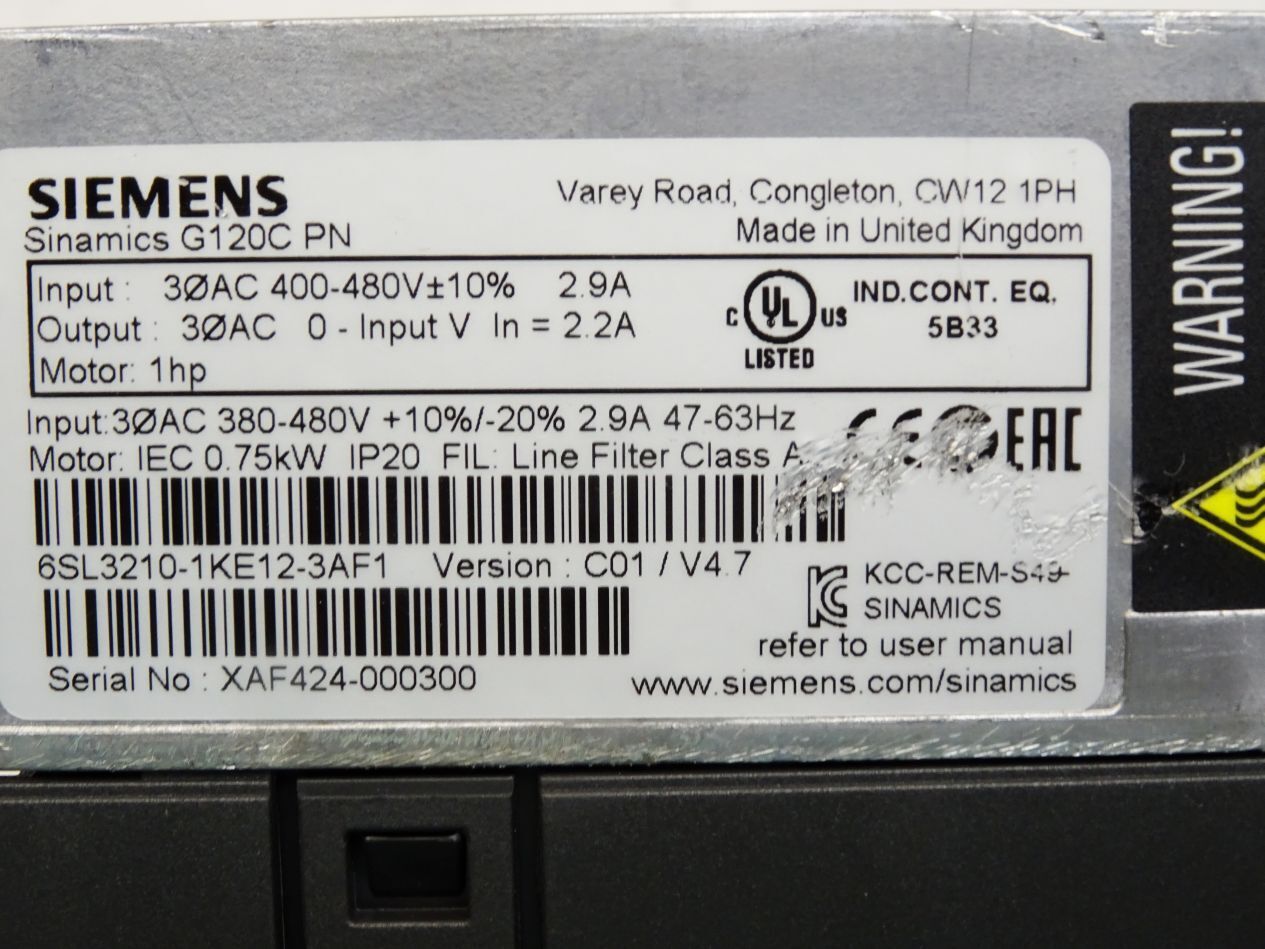 Siemens Sinamics G120C PN Frequenzumrichter 0.75kW 6SL3210-1KE12-3AF1