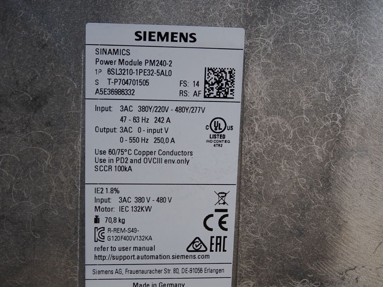 Siemens Sinamics PM240-2 6SL3210-1PE32-5AL0 132kW + 6SL3244-0BB12-1BA1 Neuwertig
