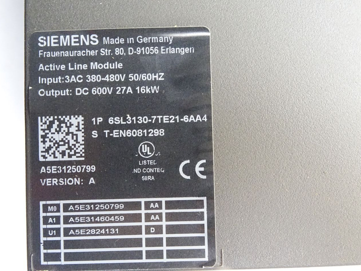 Siemens SINAMICS S120 Active line Module 6SL3130-7TE21-6AA4 16kW