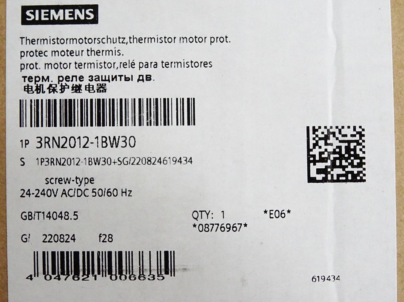 Siemens Thermistormotorschutz 3RN2012-1BW30 / Neu OVP