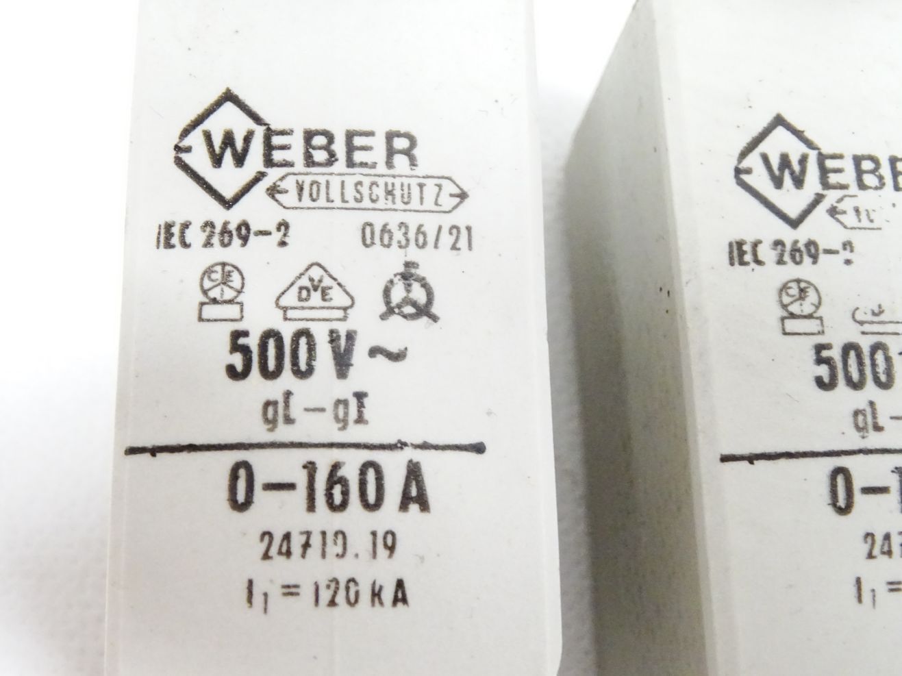 Weber Schmelzsicherung NH-0 160A gI / 24710.19 / Inhalt : 2 Stück / Neu