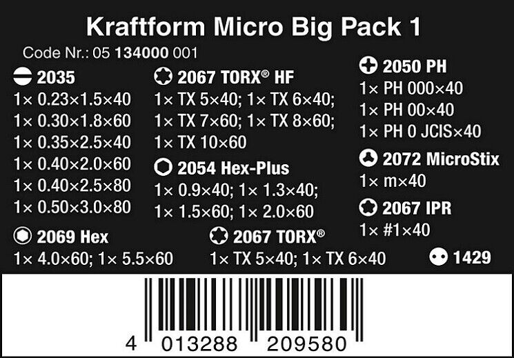 Wera Kraftform Micro Big Pack 1 Elektroniker-Schraubdrehersatz 05134000001