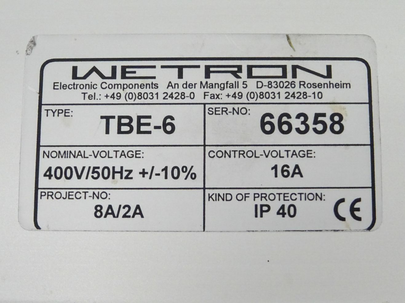 WETRON TBE6 / TBE-6 66358 400V 50Hz 16A IP40 Trennblockeinspeisung